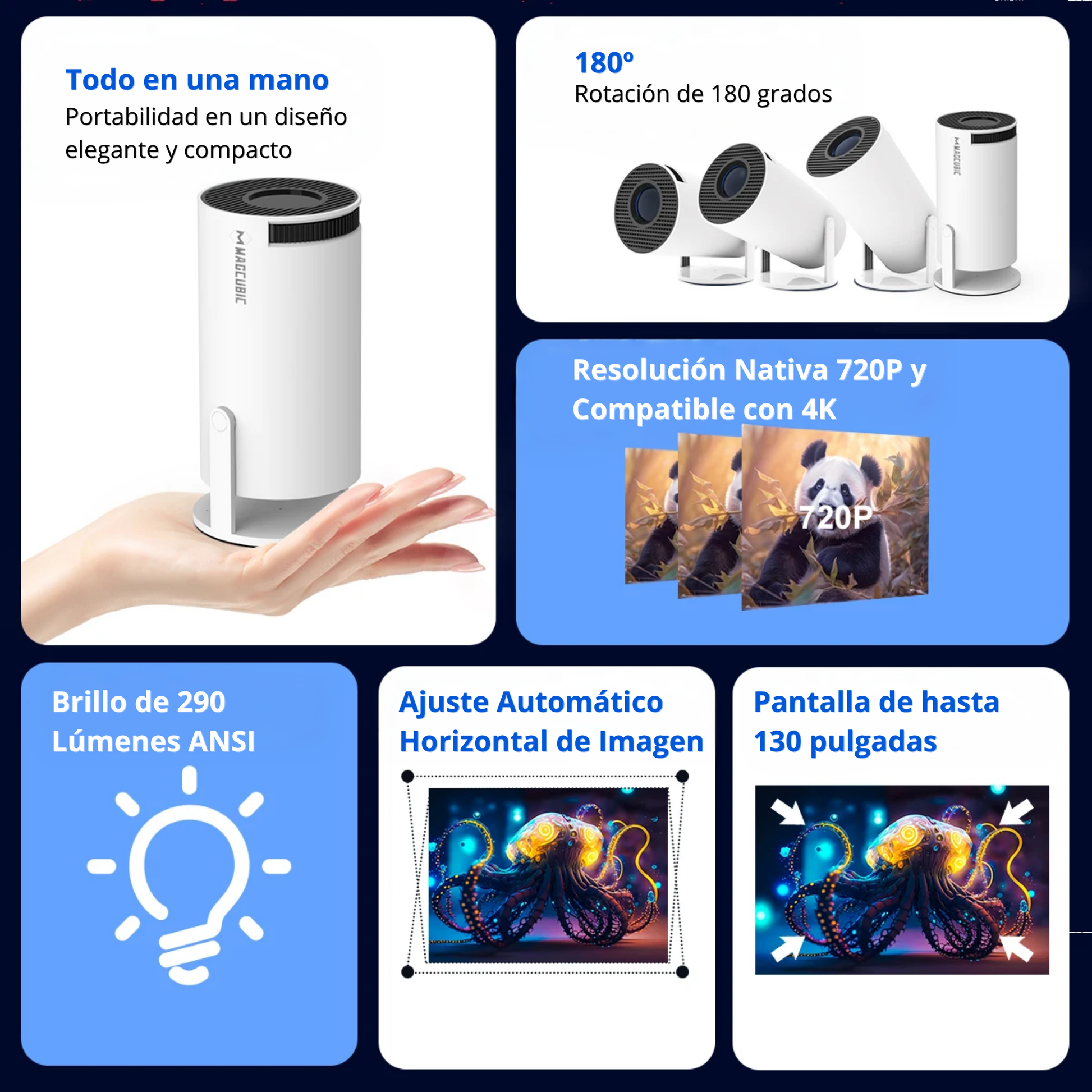 ¿Te gustaría disfrutar de tus películas, series o presentaciones en gran pantalla sin depender de un televisor? El Magcubic HY300Pro es la solución ideal: un proyector compacto, potente y fácil de llevar, diseñado para ofrecerte una experiencia cinematográfica donde estés.